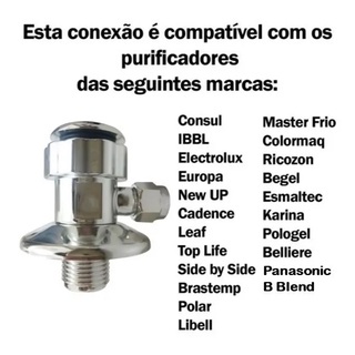 Conexão Adaptador Conector para ponto de água ou torneira para ligar em seu Purificador de Água Electrolux (ou outros que utilizem mangueira de 1/4 - 6mm) Cores: Branca e Cromada Material atóxico. Pode ser rosqueado em qualquer ponto de água ou onde tenha torneira. COM ROSCA DE 1/2 Material : Plástico Conexão macho de 1/2", fêmea de 1/2" com tampão e saída Você pode acoplar a conexão no ponto de água e colocar o tampão do outro lado para usar somente para o purificador, ou então pode colocá-la onde se uma uma torneira, assim você rosqueia a conexão no ponto de água, e a torneira na conexão. Enviamos para Todo Brasil!! Envio: - Envio é feito em até 24h. Dúvidas: - Para qualquer dúvida relacionada ao uso do produto use o campo de perguntas abaixo: