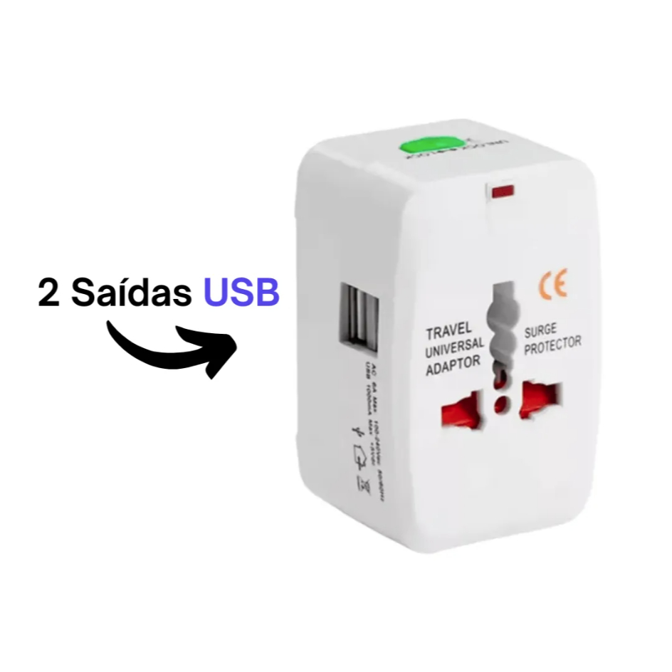 Adaptador Universal Viagem Bivolt 2 USB Tomada Internacional 150 Países Carregador Celular