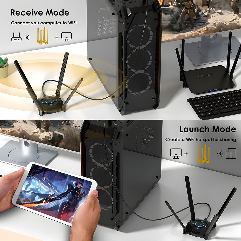 Adaptador WiFi Usb Wavlink AX5400Mbps Tri-band Pc Preto