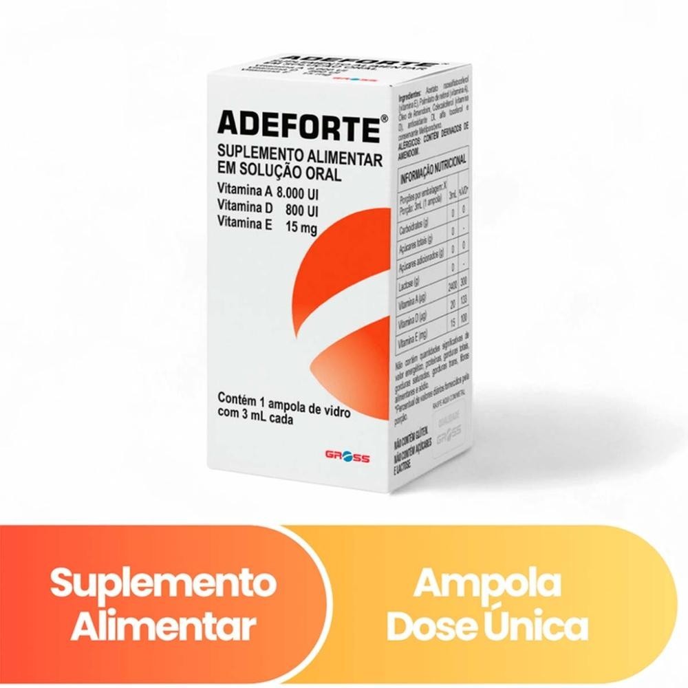 Encontre o item Adeforte Ampola 3ml na subcategoria Suplementos Alimentares (de Saúde), disponível na Shopee Brasil por R$ 37,84. Nota 4.8 de 5 na Shopee, este produto se destaca pelo excelente custo-benefício.