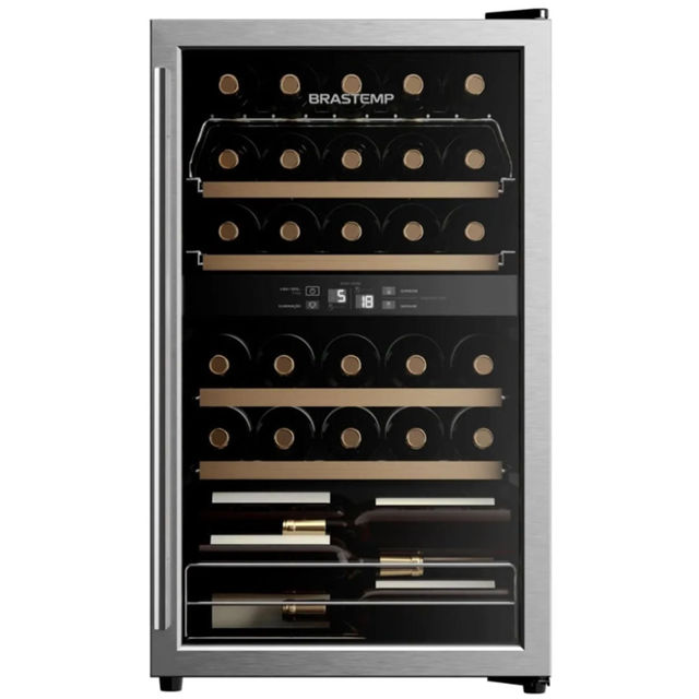 Adega Brastemp Dual Zone 33 Garrafas Inox 110V BZB33BEANA - Duas Zonas, Painel Touch e Porta com Vidro Triplo Conheça a Adega Brastemp Dual Zone 33 Garrafas Inox referência + voltagem BZB33BEANA 110V, ideal para quem quer armazenar diferentes tipos de vinho com a temperatura certa e um visual premium na cozinha ou no espaço gourmet. Com Dual Zone, ela oferece dois compartimentos com controle de temperatura independente, permitindo manter rótulos distintos prontos para servir no ponto ideal, com mais precisão e praticidade no dia a dia. O acabamento valoriza o ambiente por dentro e por fora. A adega conta com prateleiras com acabamento em madeira, puxador metálico e porta com vidro triplo baixo emissivo e proteção UV, ajudando a reduzir a troca de calor com o ambiente e preservar melhor as bebidas. O painel eletrônico touch facilita a programação e a visualização das temperaturas das duas zonas, além de controlar a iluminação interna em LED.Diferenciais e Benefícios da Adega Brastemp: Controle preciso para diferentes tipos de vinhoDual Zone com dois compartimentos e controle térmico independente para armazenar diferentes rótulos ao mesmo tempo.Faixas de temperatura dedicadas para ajustar cada zona conforme a necessidade, melhorando a experiência de servir.Termômetro digital e controle de temperatura para acompanhar e manter o ponto certo com mais confiança.Design premium e construção pensada para conservaçãoPorta com vidro triplo baixo emissivo e com proteção UV para reduzir trocas térmicas e ajudar a preservar as bebidas.Prateleiras com acabamento em madeira para um interior mais bonito e organizado.Puxador metálico com design sofisticado para valorizar cozinhas planejadas e espaços gourmet.Praticidade no uso diárioPainel eletrônico touch para programar e visualizar as temperaturas das duas zonas e controlar a iluminação interna.Iluminação interna em LED para melhor visibilidade das garrafas com conforto no uso.Eficiência energética classe A para uso contínuo com mais economia.Experiência Premium e Lifestyle A Adega Brastemp Dual Zone 33 Garrafas Inox referência + voltagem BZB33BEANA 110V é para quem leva a experiência do vinho a sério e quer praticidade com estética premium. O Dual Zone resolve o problema clássico de servir tudo na mesma temperatura, enquanto o conjunto de porta com vidro triplo, acabamento interno e painel touch entrega presença e funcionalidade para uma rotina mais elegante.Compre na Cook Eletroraro! Garanta a sua Adega Brastemp Dual Zone 33 Garrafas Inox 110V BZB33BEANA na Cook Eletroraro e aproveite benefícios exclusivos como entrega rápida, pagamento facilitado, suporte especializado e confiança na procedência do produto. Transforme seu espaço gourmet com praticidade e elegância.