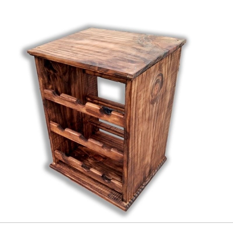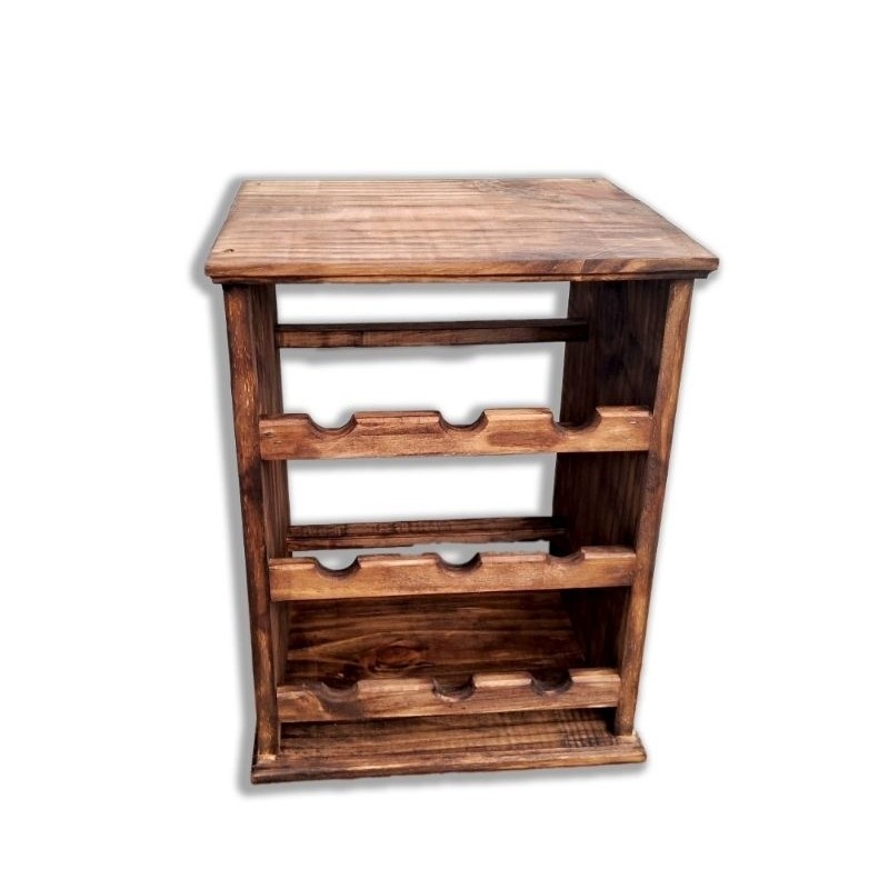 Adega de Mesa Madeira Maciça Decoração Rustica Vinhos Espumantes 9 Garrafas Acabamento Envelhecido