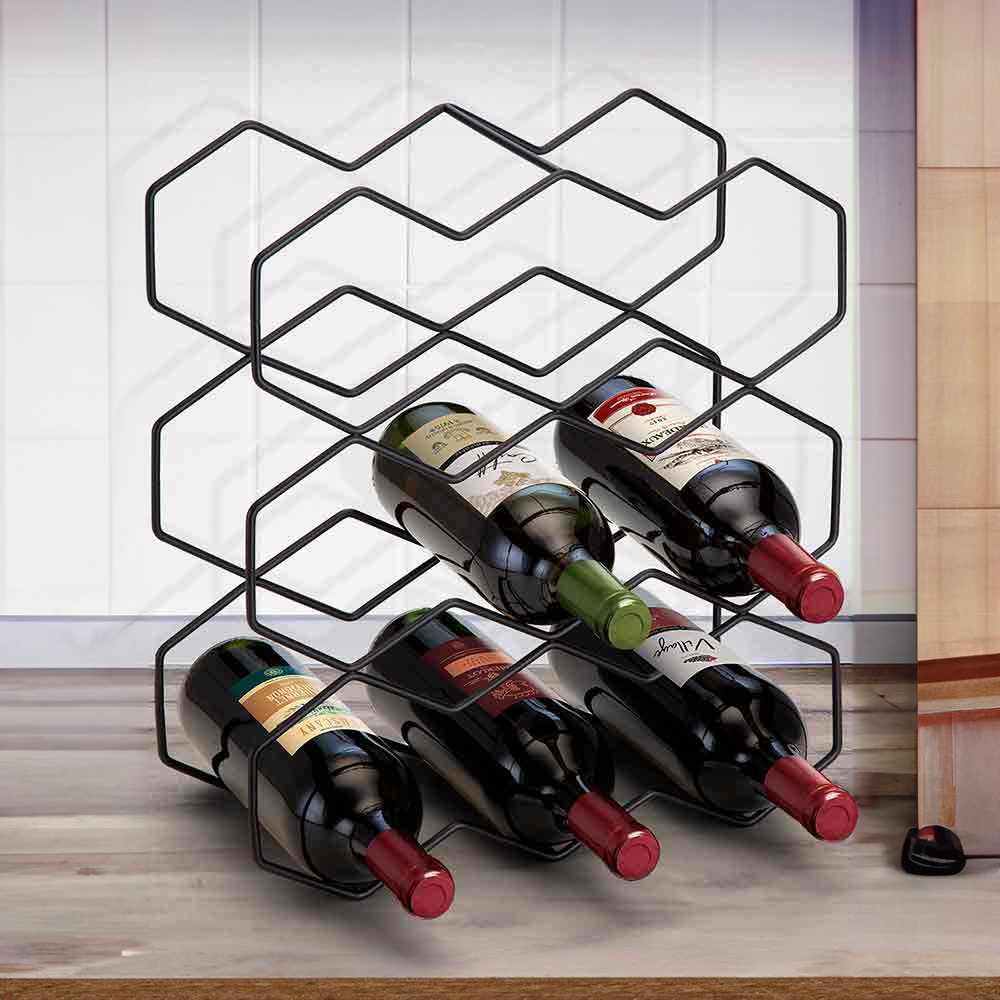 Adega Decorativa Preta Arthi Porta Vinhos 9 Garrafas Aramada Organizador de Bebidas