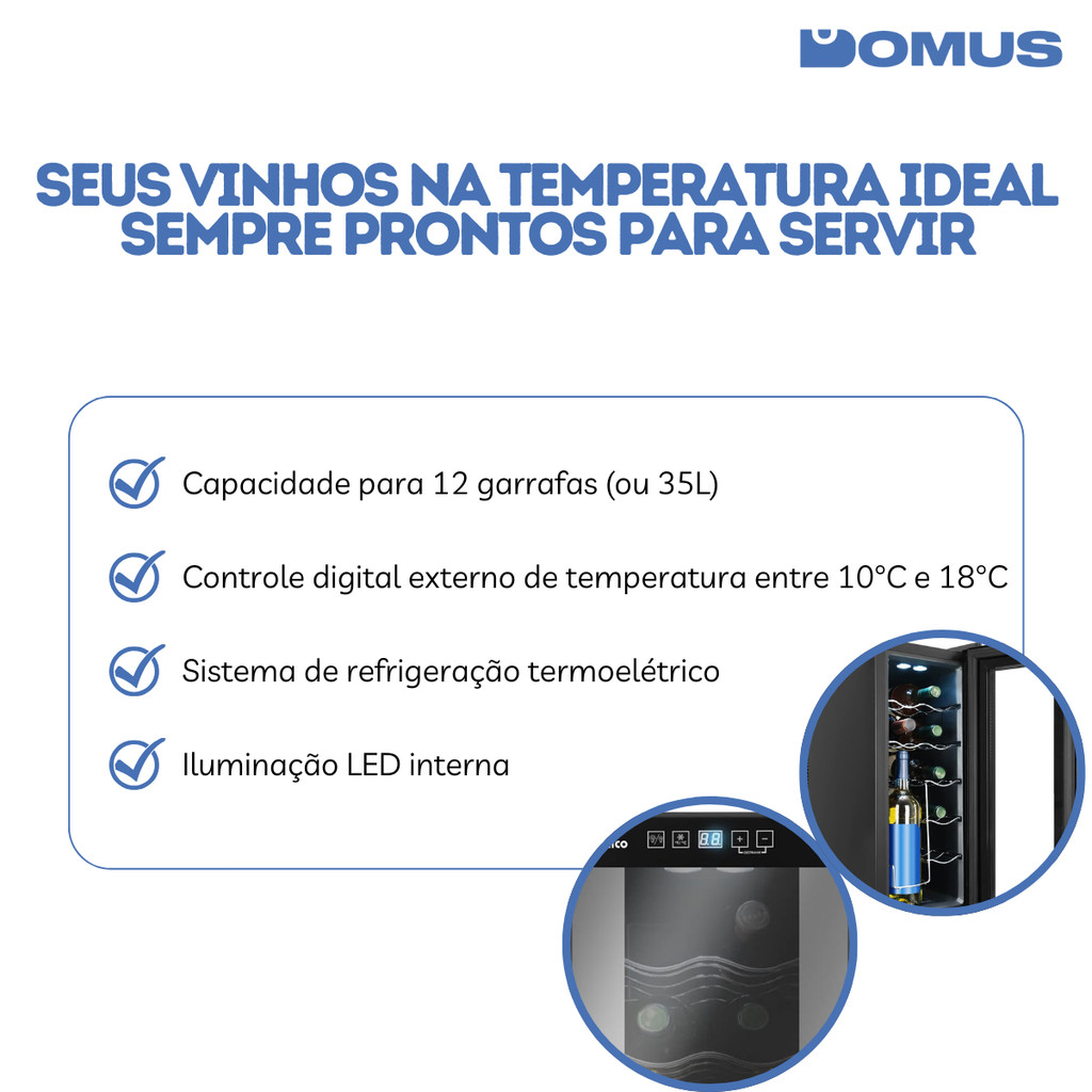 ***PRODUTO A PRONTA ENTREGA COM ENVIO IMEDIATO*** PRODUTO ORIGINAL COM NOTA FISCAL Adega Philco PAD12E 12 Garrafas com Display Digital, LED e Controle Eletrônico – Bivolt Mantenha seus vinhos sempre prontos para servir com a Adega Philco PAD12E, que alia design moderno, silêncio e eficiência. Com capacidade para até 12 garrafas, é perfeita para uso doméstico e pequenos espaços. Seu sistema de refrigeração por placa termoelétrica proporciona baixo ruído e consumo de energia, sendo também ecologicamente correta. Com controle digital externo de temperatura, você ajusta sem abrir a porta, mantendo o interior sempre na temperatura ideal entre 10°C a 18°C. A iluminação em LED facilita a visualização das garrafas, e as prateleiras cromadas, deslizantes e reguláveis garantem praticidade e segurança no manuseio. Com porta de vidro duplo, pés niveladores ajustáveis e visual elegante, ela valoriza qualquer ambiente. Ideal para quem valoriza sabor, praticidade e cuidado com os detalhes. Diferenciais do produto: • Capacidade para 12 garrafas (35L) • Refrigeração termoelétrica silenciosa e econômica • Controle de temperatura de 10°C a 18°C com display digital • Iluminação interna em LED • Prateleiras cromadas e deslizantes • Porta com vidro duplo • Baixo consumo de energia e livre de CFC • Produto bivolt automático Especificações técnicas: Marca: Philco Modelo: PAD12E Capacidade: 35L / 12 garrafas Temperatura ajustável: 10°C a 18°C Potência: 58W Tensão: Bivolt Cor: Preto Dimensões (A x L x P): 62,5 x 25,5 x 48,5 cm Peso: 13,08 kg Garantia: 3 meses Adega Philco PAD12E: silenciosa, eficiente e com o toque ideal de sofisticação. Cuide dos seus vinhos como eles merecem.