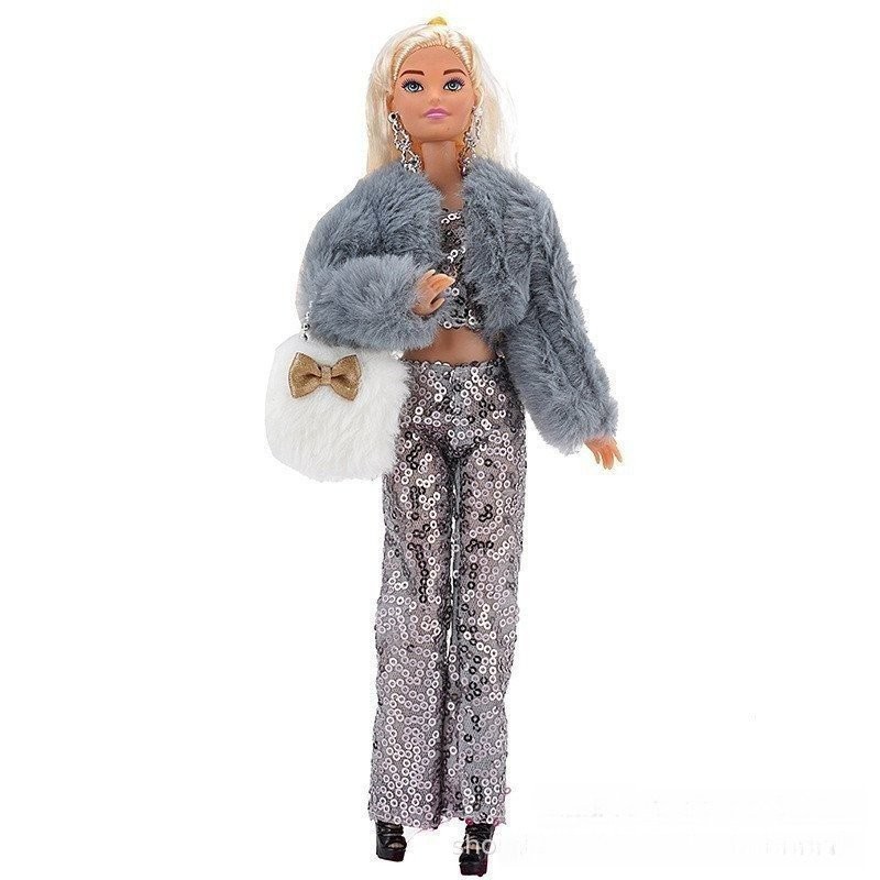 Adequado para bonecas de 30 cm, casacos de pelúcia, calças de lantejoulas e conjuntos de bolsas.