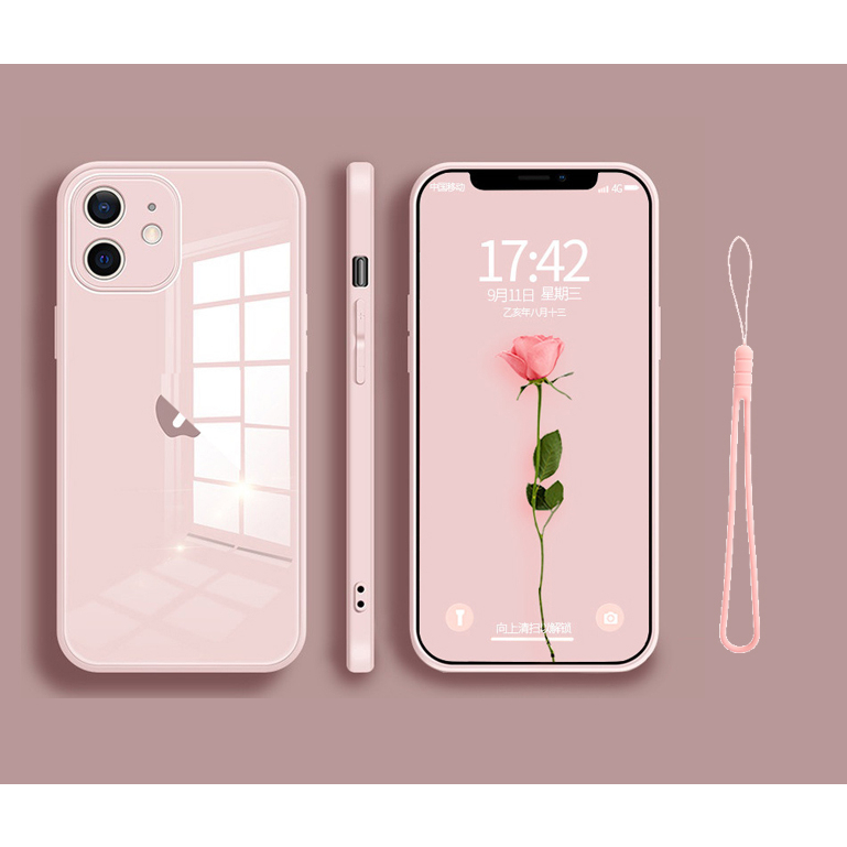 Adequado para iphone14 Caixa de telefone Apple 13 Caixa de vidro temperado XR Rubik's Cube Straight Edge 12 Caixa protetora de Silicone Corresponde ao Pingente de alça de mão de Silicone 11 /XS Caixa MAX vidro capa