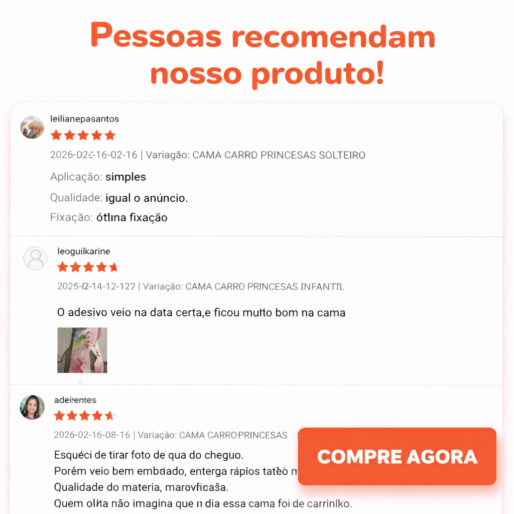 Você vai se surpreender com a facilidade de aplicação e remoção do adesivo, quando assim desejar. Sem trabalho, sem sujeiras e sem barulho. Nossos adesivos possuem temas Variados . LEIA A DESCRIÇÃO ANTES DA COMPRA. Como item de decoração está mais na moda do que nunca! Com tantas opções de cores e modelos você certamente pode encontrar algo que vai fazer parte do projeto da sua casa. Traga o adesivo para sua decoração e modifique os ambientes proporcionando um espaço mais lindo e aconchegante. DIMENSÕES : - LATERAIS: - CAMA INFANTIL: 160 x 50 cm ( comprimento x Altura ) - CAMA SOLTEIRO: 200 X 60 cm ( Comprimento x Altura ) - FRENTE: - CAMA INFANTIL: 72 x 20 cm ( comprimento x Altura ) - CAMA SOLTEIRO: 92 X 22 cm ( Comprimento x Altura ) CONTEUDO DA EMBALAGEM: - 01 KIT DE ADESIVO: ( 02 Laterais e 01 Frente ). ATENÇÃO: Sempre tenha em mãos as medidas do seu local de aplicação, sendo altura e largura. O ADESIVO É IMPRESSO E ENVIADO RETO, TANTO NA PARTE INFERIOR COMO SUPERIOR. OBSERVAÇÃO: - Verifique a medida correta na hora da compra, para evitar problemas na aplicação da peça. - Cada monitor e/ou dispositivo móvel, possuem uma configuração e qualidade diferente na visualização de imagem, sendo assim, o produto final pode ter leve alteração de tonalidade em comparação ao produto cadastrado. Em caso de dúvidas, entre em contato com nosso atendimento. Onde pode ser aplicado? Em qualquer ambiente, seja ele interno ou externo, desde que observado os seguintes requisitos: - A superfície deve ser totalmente lisa (sem textura ou relevo); - Não pode haver sedimentos como poeira ou pó de qualquer natureza; - A superfície não pode ser porosa; DICAS DE APLICAÇÃO: - Para melhor instalação retirar o line parcialmente conforme for aplicando; - A peça é reta tanto na parte superior e inferior para melhor encaixe e facilitando o acabamento; - Utilize uma régua para auxiliar na aplicação; - Para não deixar bolhas e evitar riscar no adesivo, utilize espátula com feltro. ATENÇÃO – MEDIDAS NA IMAGEM