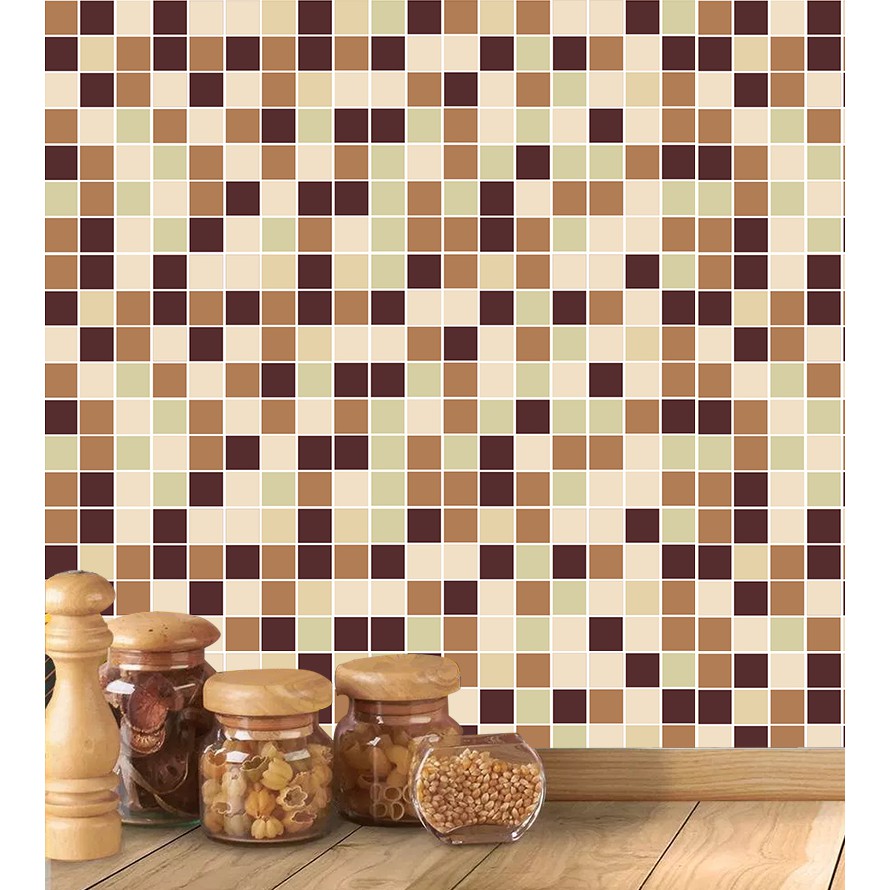 Adesivo Azulejo Pastilhas Em Tons de bege, amarelo e marrom para Cozinha