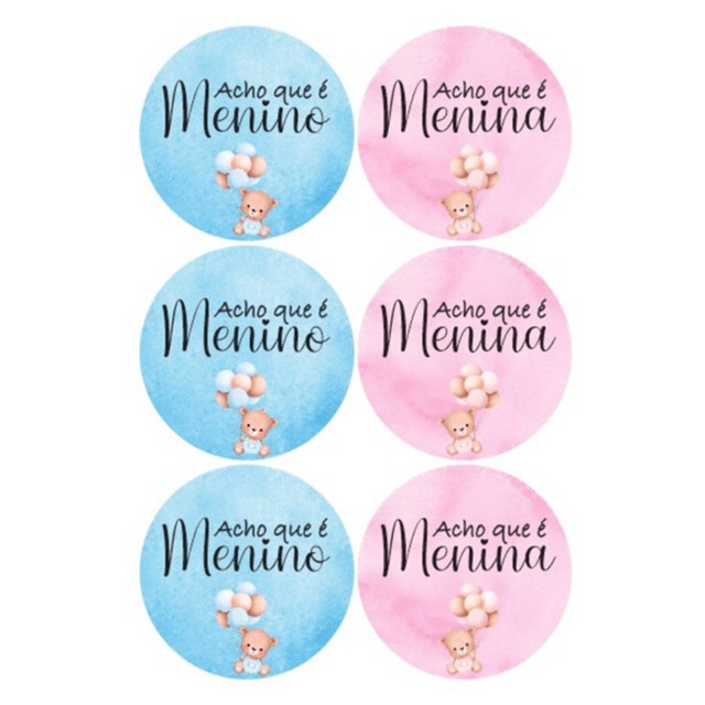 | Adesivo Chá Revelação Acho que é Menino, Acho que é Menina Azul, R... este produto | R$ 12,20 | 2% | 5.0/5 | 242 |