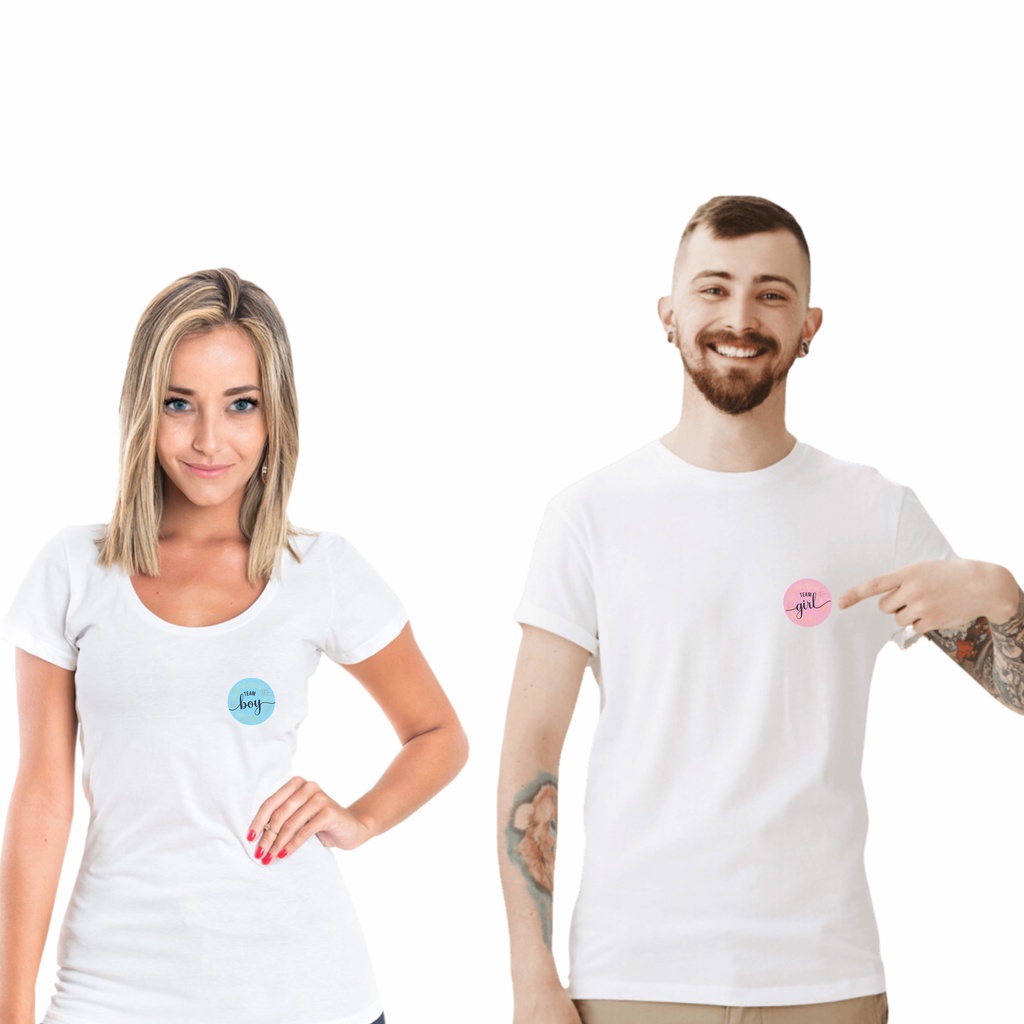 Adesivo Chá Revelação Team Girl Boy 120un Redondo Rosa/azul