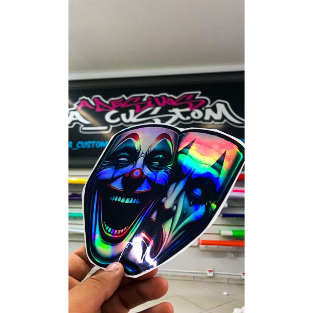 Adesivo chora agora e ri depois holografico impresso 15cm