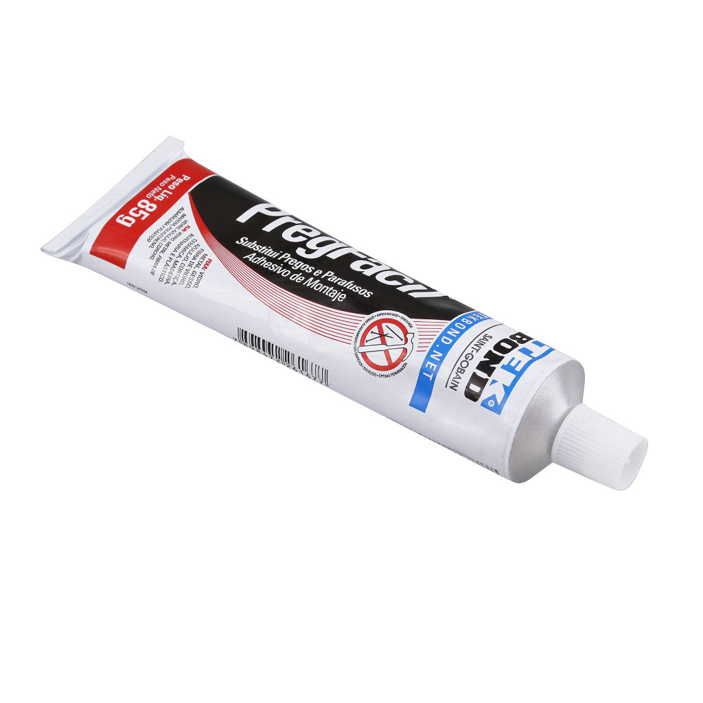 TRADICIONAL Adere em diversos tipos de substratos como madeira, metal, alvenaria, reboco, gesso, vidro, cortiça, tijolo, pedra, granito, azulejo e alguns tipos de plásticos (PVC, policarbonatos etc.). MODO DE USAR: 1. Limpar e secar muito bem as superfícies. 2. Utilize uma ferramenta para romper o lacre no fundo do cartucho e perfurar a ponta do mesmo. Rosquear o bico aplicador e cortar a ponta em um ângulo de 45°. 3. Colocar o tubo na pistola aplicadora (a pistola não acompanha o produto) 4. Aplique o Preg Fácil Tekbond somente no centro da superfície desejada. 5. Una as duas partes para espalhar o produto de forma uniforme e, logo em seguida, abra as partes novamente. (Nota: A aplicação ideal deve ser com uma camada de 1mm a 2mm de expessura). 6. Aguarde alguns minutos para que o solvente evapore. (Recomenda-se deixar o tempo de 2 minutos para cada camada com 1mm de espessura). Não deixar as partes abertas prolongadamente. 7. Depois do tempo de abertura, junte as partes novamente, as mantenha pressionadas por, pelo menos, 10 segundos. (Para materiais muito pesados, utilize o auxílio de fitas adesivas ou um calço até a secagem total). 8. Remova possíveis excessos com um pano úmido. 9. Após a utilização, remova o bico aplicador. Deixe um pouco do produto na ponta do tubo, a fim de que este forme um lacre provisório e feche a tampa. IMPORTANTE: Se possível, prefira a aplicação do produto em “X” ou em “Zig-zag”, pois isso evita excessos e melhora o acabamento. DADOS TÉCNICOS: Aparência visual: Pasta tixotrópica bege com odor característico Tempo de formação de película: 5 a 20 minutos Densidade: 1,20 a 1,50 g/mL Teor de sólidos: 82% Temperatura de trabalho: - 30 a 70°C Temperatura de aplicação: +5 a 50°C Resistência ao cisalhamento, após 2 horas: 7Kg/cm2 Resistência ao cisalhamento, após 24 horas: 55Kg/cm2