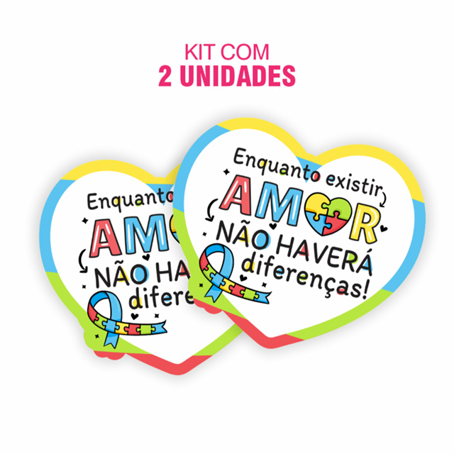 Adesivo Coração Autismo - Enquanto Existir Amor Não Haverá Diferenças Kit com 2 Unidades