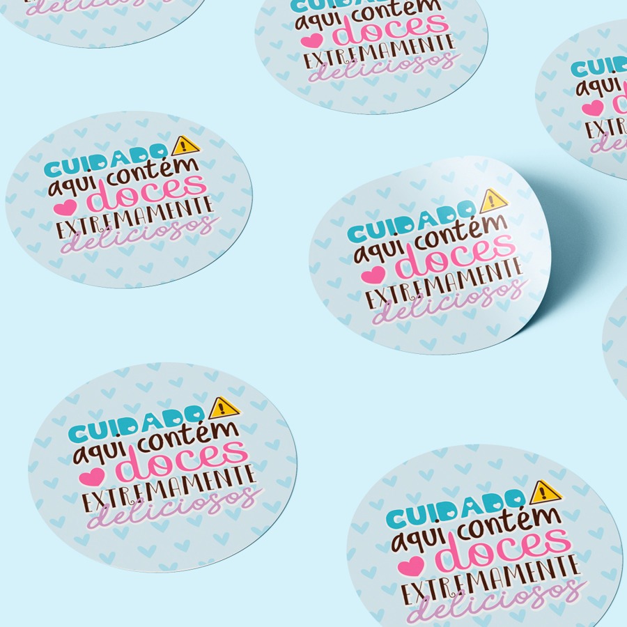 Adesivo Redondo 4x4 cm Cuidado! Aqui Contém Doces Deliciosos | Apanda Deixe suas embalagens mais divertidas e encantadoras com este Adesivo Redondo 4x4 cm da Apanda! Produzido em papel couchê de alta qualidade com a frase criativa "Cuidado! Aqui contém doces extremamente deliciosos", é perfeito para confeitaria, lembrancinhas e embalagens que merecem um detalhe especial. DIFERENCIAIS E BENEFÍCIOS - Qualidade de impressão: papel couchê adesivo com brilho leve e impressão digital nítida. - Alta durabilidade: possui boa resistência à exposição ao sol e excelente fixação. - Praticidade: já vem pronto para uso. Indicado para aplicação direta em superfícies e embalagens lisas e secas. - Destaque para a marca: excelente custo-benefício para padronizar e profissionalizar suas entregas. - Design temático: frase criativa que encanta e comunica o conteúdo da embalagem. ESPECIFICAÇÕES TÉCNICAS - Tamanho: 4x4 cm. - Formato: Redondo. - Material: Papel Adesivo Couchê (não é transparente, possui brilho leve). - Impressão: Digital Colorida de alta resolução. - Modelo: Pronto com frase fixa "Cuidado! Aqui contém doces extremamente deliciosos". - Quantidade: Escolha a quantidade ideal para você nas variações do anúncio. ONDE USAR Ideal para embalagens de brigadeiros, cupcakes e docinhos; sacolas e caixinhas de confeitaria; lembrancinhas de festas e eventos; e produtos artesanais que merecem um detalhe especial. COMO FAZER SEU PEDIDO 1. Finalize sua compra. 2. Pronto! Não é necessário enviar informações adicionais. - Importante: Este produto é vendido pronto e não é personalizável. A frase e o design são fixos conforme a imagem. - Já vem pronto para usar. Basta destacar e aplicar na sua embalagem. - Indicado para uso em ambientes secos e em embalagens que não tenham contato direto e constante com umidade. Não é plastificado e não é à prova d'água. - Prazo de postagem: Em até 2 dias úteis após a confirmação do pagamento. Produto Apanda Papelaria Personalizada, feito com carinho para valorizar cada detalhe!