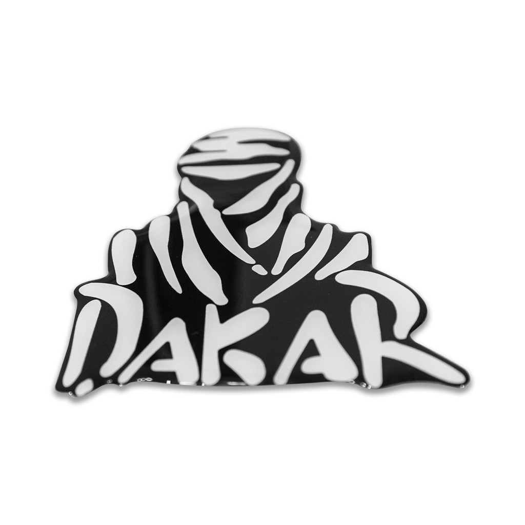 Adesivo Dakar Fundo Branco Com Fundo Preto Resinado 10,5cm x 8cm