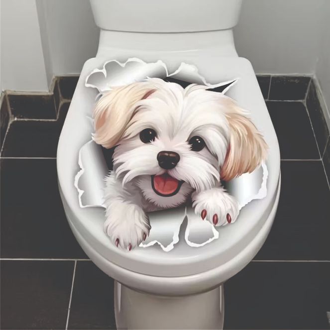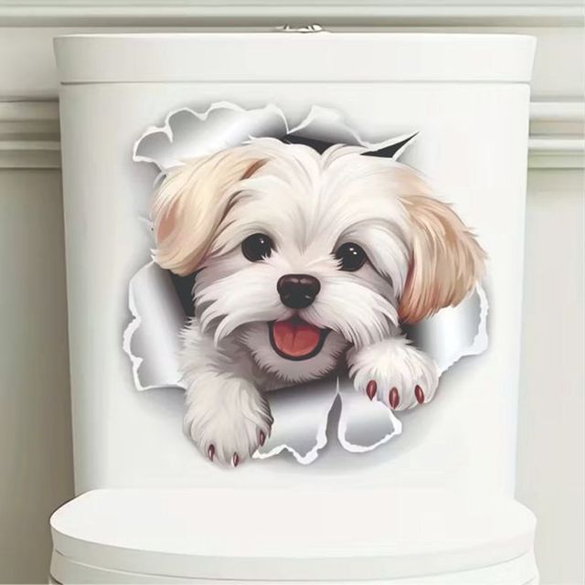 1 pç 20cm Adesivo de Assento Sanitário para Cão Branco - 1 unidade, Adesivo para Tanque de Banheiro Doméstico, Adequado para Portas e Paredes, Para Adicionar um Pouco de Diversão à Sua Casa