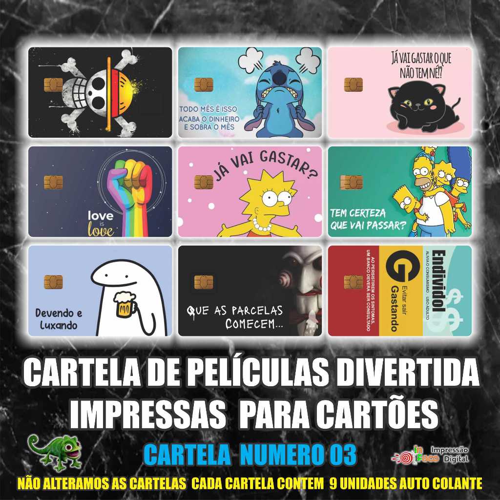Somos a INFOCO IMPRESSÃO DIGITAL Apresentamos noss skin card divertidos para cartões, cnfeccionado em vinil auto adesivo ( nao é papel) em alta qualidade de impressao e recorte conjugado ESCOLHER O MODELO NA VARIAÇÃO DO PRODUTO Versatilidade de Uso: Nosso adesivo é compatível com cartões de crédito, débito, vale alimentação e vale refeição, medida universal - Resistente a Água e Desgaste: Nosso adesivo é fabricado com materiais de alta qualidade, tornando-o resistente a água, desbotamento e desgaste e é laminado para durar por muito mais tempo. - Recomendamos o Uso por aproximação para maior duração dos adesivos Nas fotos temos como fazer a a plicação