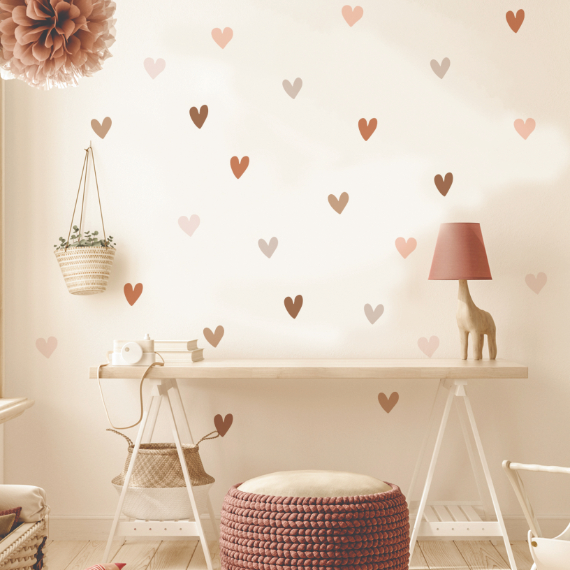 Adesivo de Parede Boho Corações Terrosos Decorativo Quarto Facil Aplicação