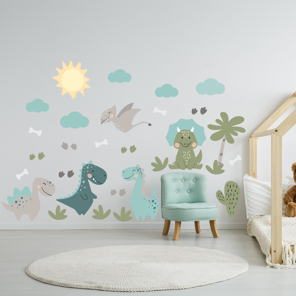Adesivo de Parede Dinossauros Jurassic Baby – Kit Completo para Quarto Infantil