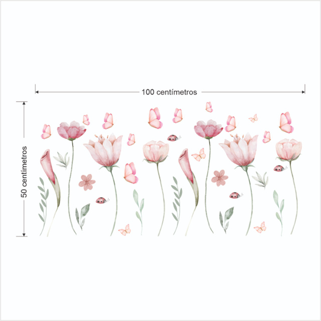 Adesivo De Parede Em Recorte Sem Fundo Flores Raminhos Jardim Borboletas Rosa