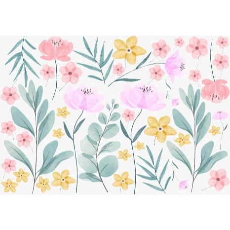 Adesivo de Parede Flores Aquarela das quarto menina – Decoração Delicada, Lavável, Fácil Aplicação