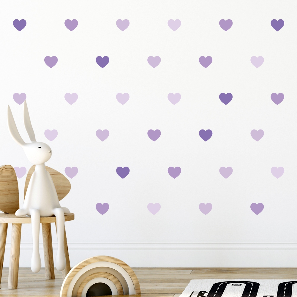 Adesivo de Parede Infantil 108 Corações com 5cm Tons de Roxo Quarto Sala Amor Menina Menino Decoração Bebê - 200adn