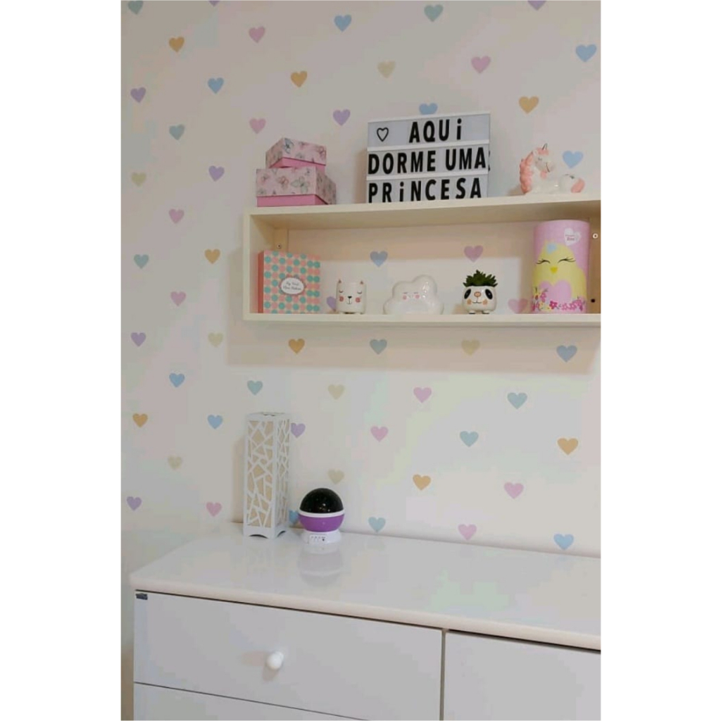 Adesivo Decorativo de Parede Infantil Coração Coraçãozinho Tons Pastéis Papel de Parede Medida: 5cm Adesivo Vinil impresso na cor com recorte eletrônico - COMO O MATERIAL É IMPRESSO, INDICAMOS QUE COMPRE A QUANTIDADE NECESSÁRIA, POIS PODE HAVER VARIAÇÃO DE COR DE UMA COMPRA PARA OUTRA. ACOMPANHA GABARITO PARA DISTANCIA DE 20, 15 E 10CM Produzido com materiais de alta qualidade, não precisa de cola e você mesmo pode aplicar, sem necessidade de um profissional. - Corte perfeito - Excelente material - Ótima Qualidade - Compra garantida - Produto não tóxico - Pronta entrega - Postagem rápida OBS: - Os adesivos podem ser aplicados em superfícies lisas e planas, ideais para aplicação em quartos, consultório, escritório, porta de correr, sala de espera, recepção, studio, brinquedoteca, lojas, comércio, paredes, vidros, móveis, portas, cerâmicas, metal, geladeira, espelhos, box de banheiro, teto, mesa, decoração de festas, personalização de um canto especial ou onde sua imaginação desejar. - Não indicamos aplicar sobre, superfícies com pó, texturizadas, porosas, jateada, tinta magnética, tinta específica lavável, locais úmidos ou com infiltração. O PRODUTO NÃO ADERE EM TINTA CAL, TINTA ESPECIFICA LAVAVEL, PAREDE GESSO SEM PREPARO, GESSO CRU, TINTA MAGNÉTICA, GRAFIATO, TEXTURA, JATEADO. - *Em paredes recém-pintadas aguarde pelo menos 15 dias para secagem completa da tinta*. - As cores podem ter variações entre celular, computador e papel em até 25% Estamos a disposição e aguardando seu pedido!!