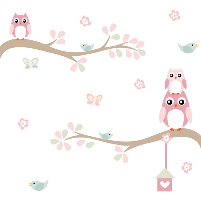 Adesivo de Parede Infantil Galhos Coruja Baby Decorativo Quarto de Menina