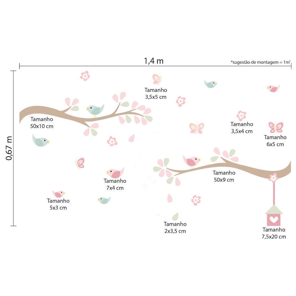 🌿🐦Adesivo de Parede Galho, Pássaros e Flores Escolha seu modelo: 🦎 Modelo 1 - Adesivo de Parede Infantil Galhos e Pássaros com Camaleão: Contém um total de 48 adesivos, sendo eles: 9 Pássaros (entre 7x5cm e 5x3cm) 35 Folhas (2x3,5cm) 2 Galhos (50x9cm e 50x10cm) 2 Camaleões (14x12cm) 🌸 Modelo 2 - Adesivo de Parede Infantil Galhos e Pássaros Passarinhos: Contém um total de 53 adesivos, sendo eles: 1 adesivo de galho de 50x10c 1 adesivo de galho de 50x9cm 1 adesivo de casinha de 7,5x20cm 4 adesivos de pássaros 5x3cm 4 adesivos de pássaros 7x4cm 6 adesivos de flores 3,5x4cm 2 adesivos de borboletas 6x5cm 2 adesivos de borboletas 3,5x5cm 32 adesivos de folhas 2x3,5cm 🐦 Modelo 3 - Adesivo de Parede Infantil Galhos e Pássaros Grande: Contém um total de 53 adesivos, sendo eles: 1 adesivo de galho de 110x23,5cm 1 adesivo de galho de 110x19,5cm 1 adesivo de casinha de 12,5x33cm 4 adesivos de pássaros 7x5cm 4 adesivos de pássaros 6x3cm 6 adesivos de flores 4x4cm 2 adesivos de borboletas 7x6cm 2 adesivos de borboletas 5x6cm 32 adesivos de folhas 2x3,5cm 🐝 Modelo 4 - Adesivo de Parede Infantil Galhos Abelhas e Flores: Contém um total de 57 adesivos, sendo eles: 2 Adesivos de galhos de 50cm cada um. 6 Adesivos de abelhas que variam entre 7,8x5,6 a 7x6,5cm. 1 Adesivo de sol de 7,5cm; 8 Adesivos de corações de 3cm; 7 Adesivos de flores de 3,5cm; 4 Adesivos de borboletas de 5,3x3,3cm; 29 Adesivos de folhas que variam entre 4 e 2cm. ✨ Características Recorte inteligente com alta precisão Aplicação fácil e rápida, sem necessidade de profissional Lavável e durável Produto não tóxico Garantia de 12 meses 🧱 Onde Aplicar Ideal para: Paredes lisas com tinta acetinada, látex ou acrílica Móveis, espelhos, portas e boxes de banheiro ⚠️ Evite aplicar em: Tinta fresca ou magnética Superfícies irregulares, texturizadas ou com infiltração Locais com poeira ou resíduos de gesso 🍃 Uma Decoração Cheia de Vida! Os galhos com folhas, pássaros e camaleões criam um cenário lúdico e encantador. Personalize seu espaço com criatividade e transforme qualquer ambiente em minutos! 📦 Garanta já o seu e dê um toque de natureza à decoração com muito estilo e praticidade!