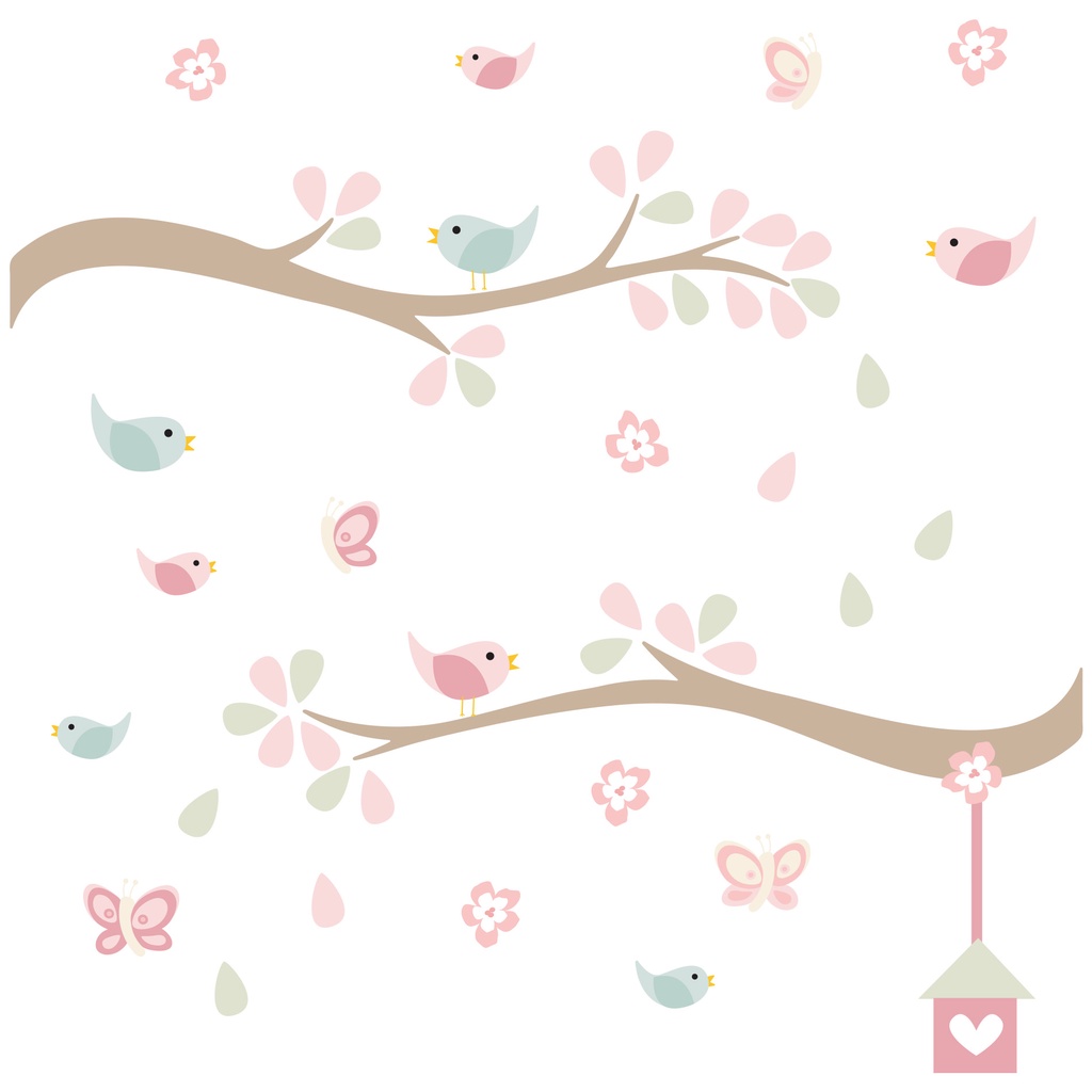 Adesivo de Parede Infantil Galhos e Pássaros Passarinhos