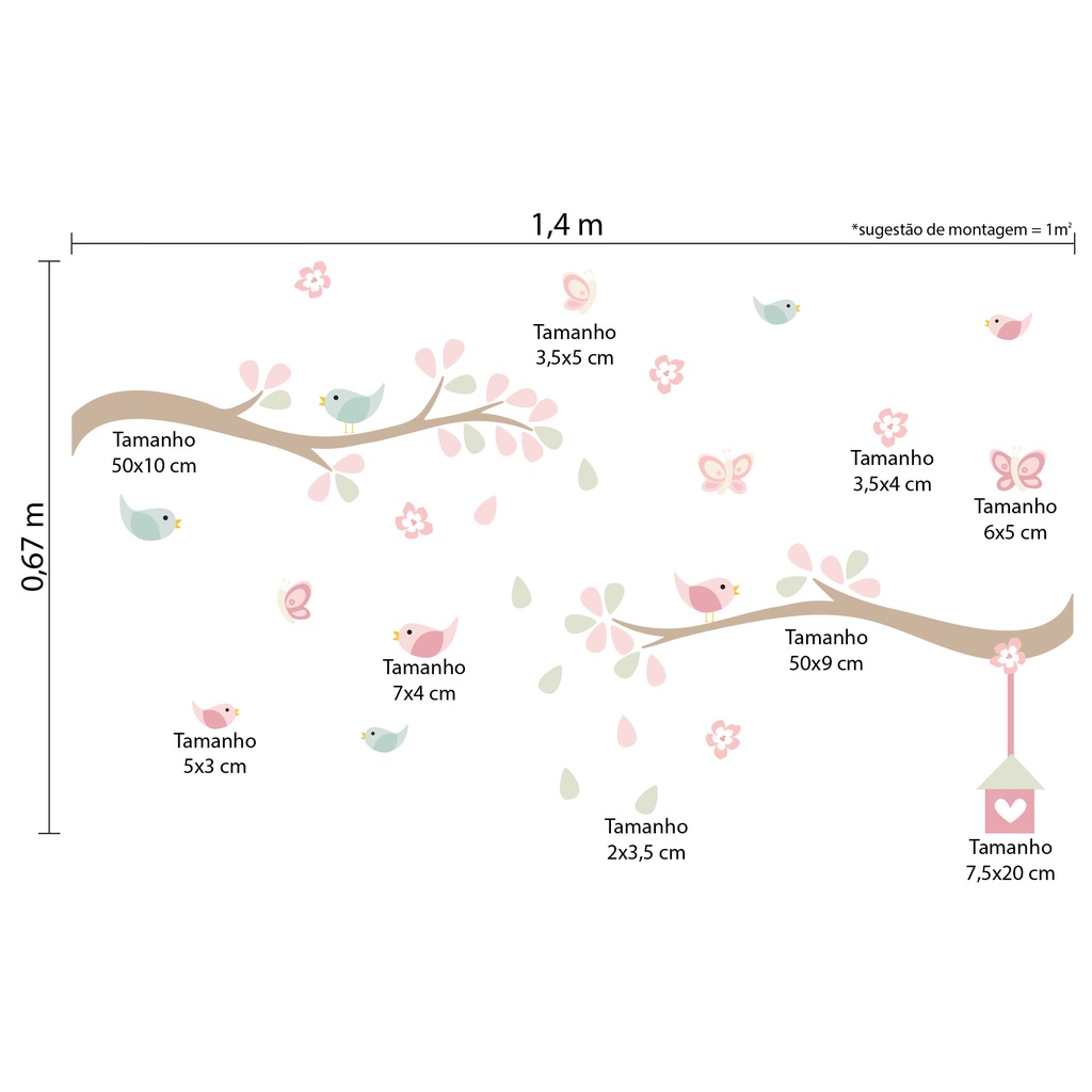 Adesivo de Parede Infantil Galhos e Pássaros Passarinhos