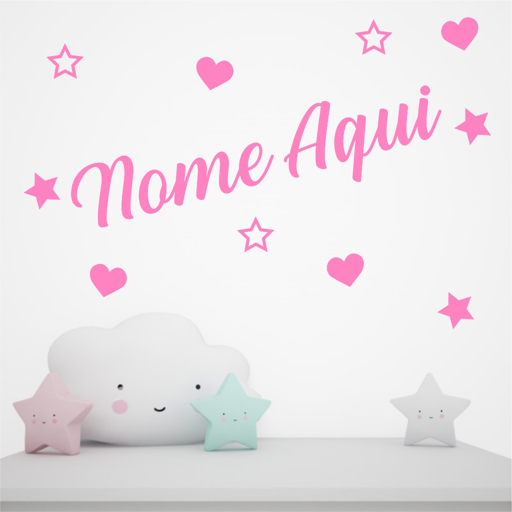 Adesivo de Parede Infantil - Nome Personalizado - Menina - Menino - Neném - Bebê - Quarto Infantil !!!ATENÇÃO!!! OS NOMES DAS IMAGENS SÃO APENAS EXEMPLOS 01 NOME PERSONALIZADO 40X10 - INFORMAR O NOME NO CHAT APÓS A COMPRA (PARA NOME COMPOSTO, COMPRE 02 UNIDADES) 04 Corações 3x3cm + 07 Estrelas 3x3cm (nome menina) ou 11 Estrelas (nome menino) - IMAGEM ILUSTRATIVA SEM ESCALA PRONTO PARA APLICAR: - Fácil, rápido e sem sujeira. VANTAGENS: - Material a prova d’água; - Não propaga fogo; - Antimofo e Bactericida; - Suprime pequenas irregularidades da parede; - Material autoadesivo vinílico de fácil manuseio; - Não faz sujeira com cola, - Não há necessidade de mão de obra especializada. PRECAUÇÕES: - Para uma melhor aplicação limpe o local com um pano úmido, certifique-se de retirar todo o pó da superfície para melhor fixação do adesivo. - Não aplicar em paredes com mofo, bolor, umidade ou infiltrações. VITALIDADE DA APLICAÇÃO: - Interna 6 anos. - Externa 12 meses. !!ATENÇÃO!! - Para trocas e devoluções, não será admitido qualquer indício de uso ou avaria do adesivo decorativo.