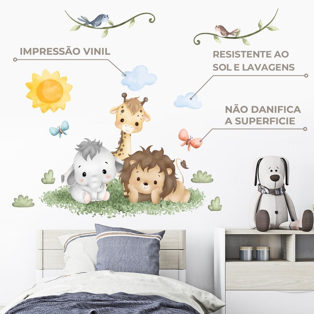 Adesivo de Parede Safari Infantil Papel de Parede Animais da Selva Decoração Quarto Bebê Kids e Brinquedoteca 09