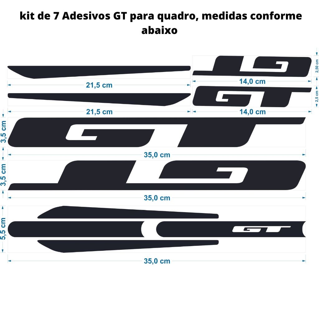 Kit adesivo para bicicleta Modelo GT aro 26, 27,5 e 29 Verificar os detalhes das medidas nas imagens 2 e 3 Adesivo automotivo Imprimax, uma das melhores marcas do mercado, Extrema proteção e Longos anos de durabilidade, resistente ao sol, chuva, protege contra atrito, poeira, pedras e riscos. Compatível com todas as bicicletas do aro 20 ou maior. Detalhes das medidas de cada adesivo nas imagens do anuncio, verificar cores disponíveis na variação do anuncio Especificação Técnica: • Fabricado em adesivo vinil automotivo de ótima qualidade • Compatível com todos os modelos de quadro de aro 20 até 29 • Autocolante • Ótima Aderência e Durabilidade • Maior Praticidade na Instalação **ANTES DE INSTALAR LIMPE BEM O LOCAL DA INSTALAÇÃO COM ÁLCOOL ISOPROPÍLICO PARA UMA MELHOR ADERÊNCIA* CERTIFIQUE-SE QUE NÃO TENHA RESÍDUOS DE SUJEIRAS, SILICONE, ÓLEO E OUTROS****