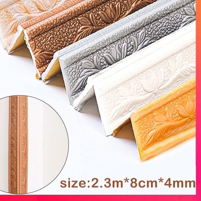 Adesivo de Roda de Teto de Espuma 3D Autoadesivo Impermeável 230cmX8cm Decoração de Casa Moderno Estiloso