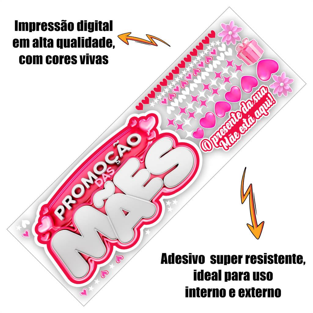 Adesivo de Vitrine Promoção Dia das Mães | Decoração Mês das Mães Loja Vinil