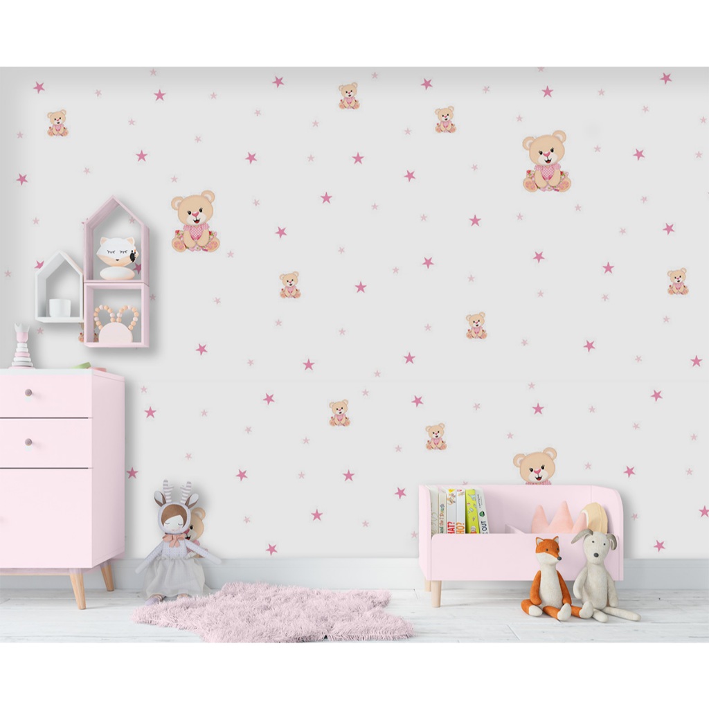 Adesivo Decorativo De Parede Quarto Menina Ursinha Ursa Rosa Estrelas Autoadesivo