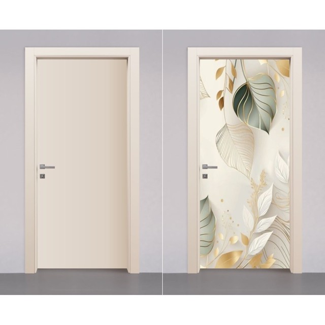 Adesivo Decorativo de Porta de Madeira Vidro Madeira Folhas Residencial Quarto