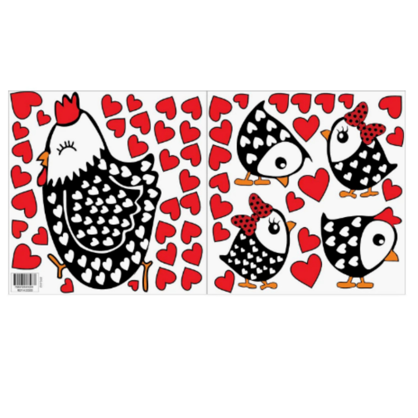 Adesivo Decorativo Galinha Pintinhos Coração Vermelho Para Geladeira Banheiro Móveis Paredes