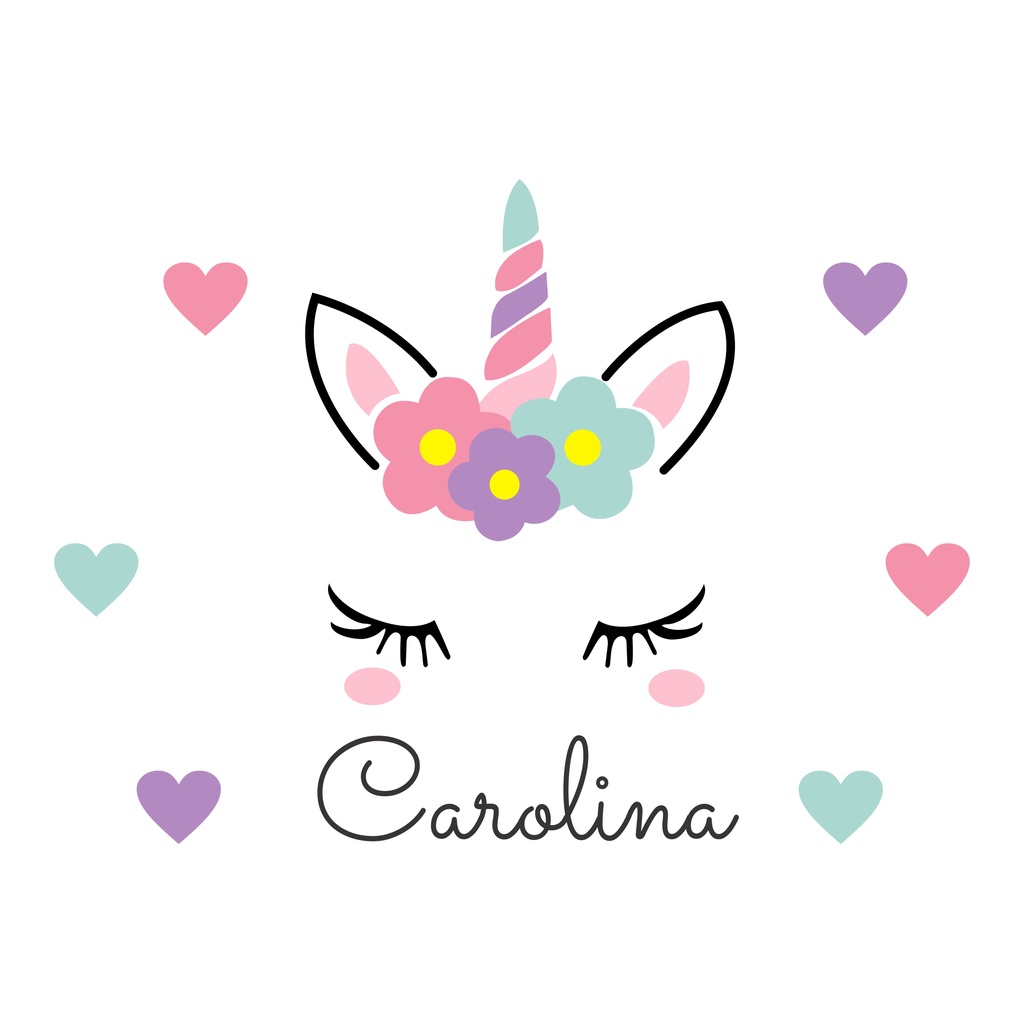Adesivo Decorativo para Parede Unicórnio Infantil com Nome e Corações para Decoração de Quarto Menina