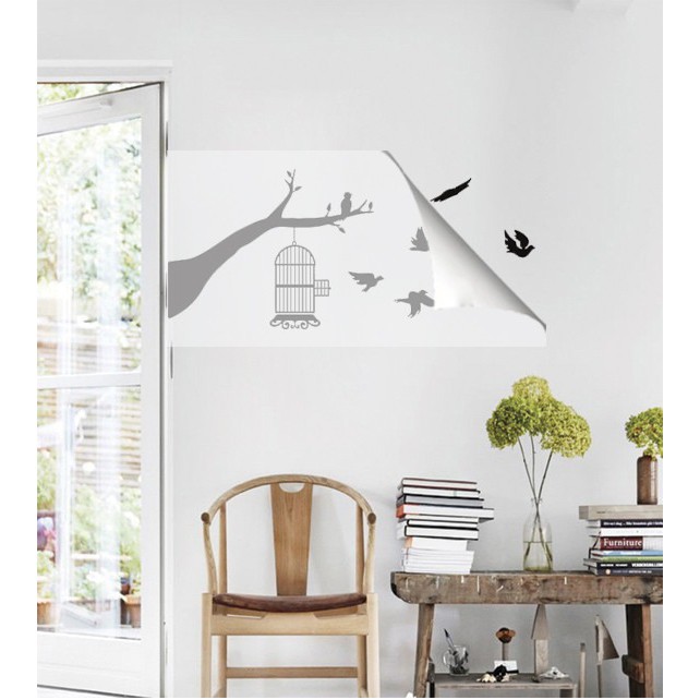 Adesivo Decorativo Parede Galhos Pássaros Gaiola Passarinhos