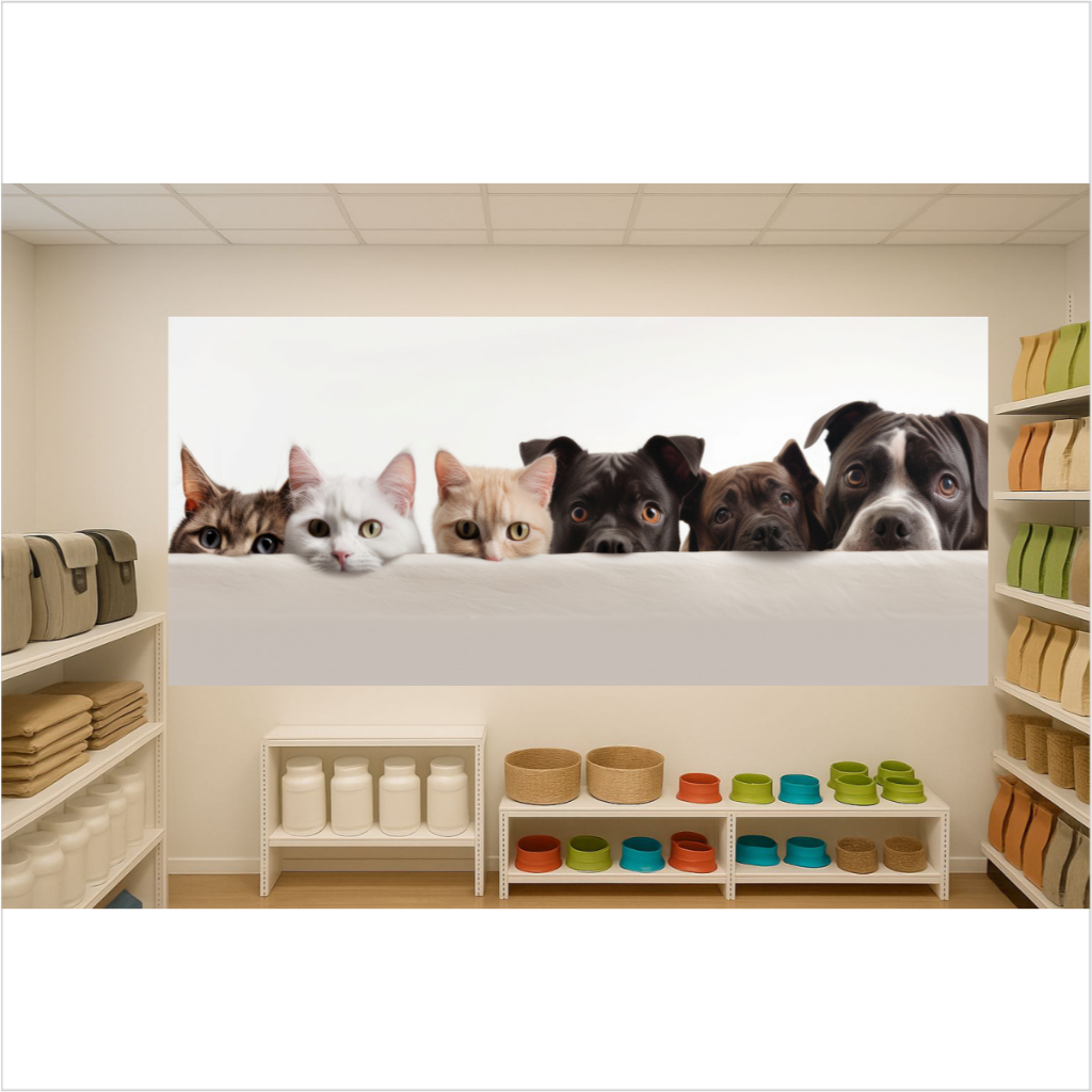Adesivo Decorativo Pet Shop Veterinário Painel Vitrine Parede Cachorro Gato Banho Tosa Casa Ração
