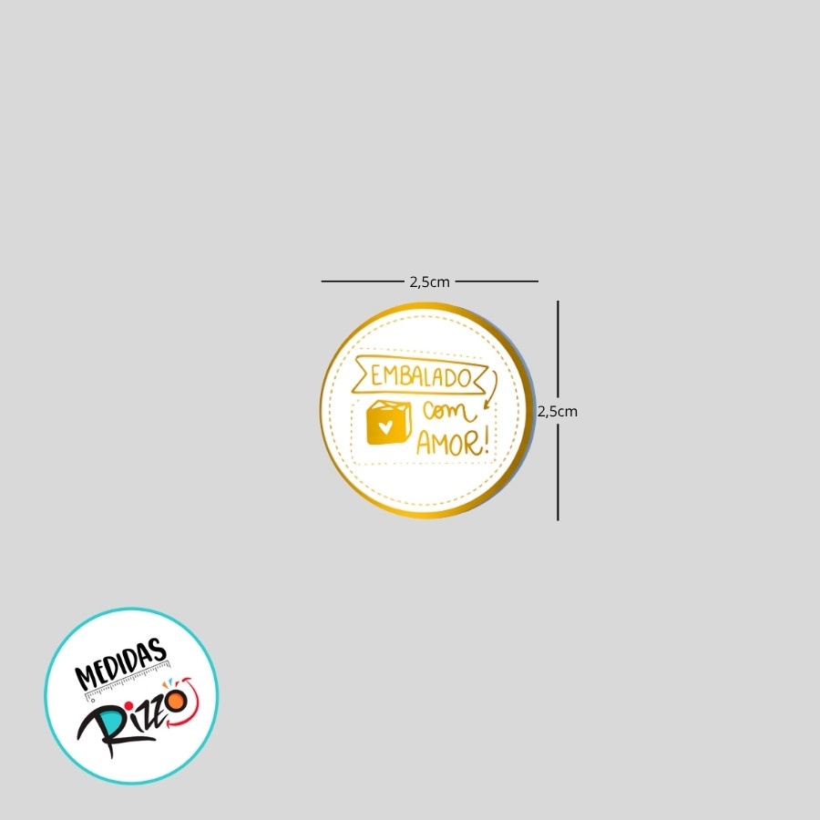Adesivo "Embalado Com Amor" - Ref.2120 - Hot Stamping - 2,5x2,5cm - 50 unidades - Stickr - Rizzo