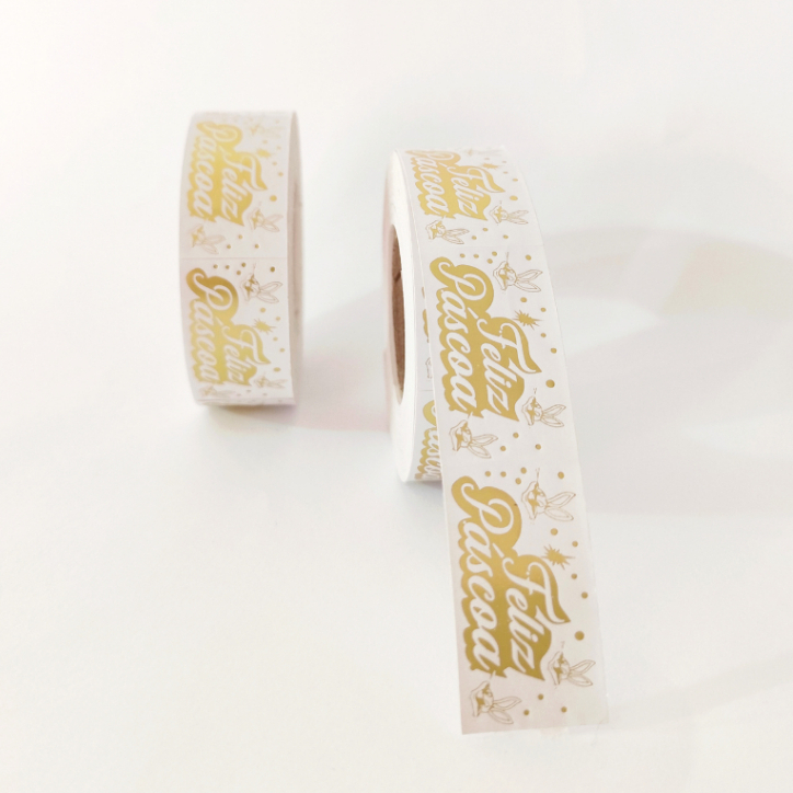 Adesivo Feliz Páscoa com Hot Stamping Dourado- Rolo com 500 unidades