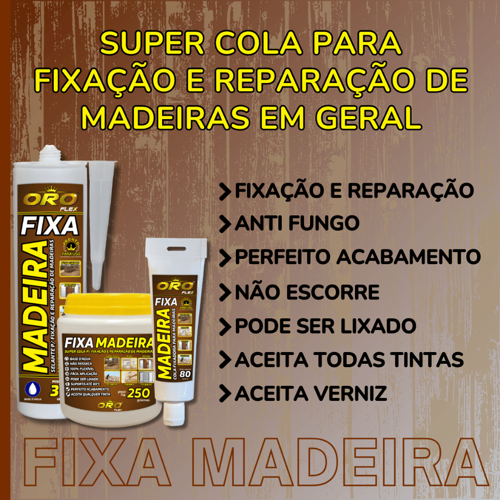 OROFLEX FIXA MADEIRA, é uma INOVAÇÃO OROFLEX. Trata-se de uma super cola pastosa base d’água, na qual o maior diferencial é que, além de REPARAR, ela também tem alto poder de FIXAÇÃO em todos os tipos de Madeira. Uma excelente opção para montagem de moveis planejados, onde elimina furos e proporciona um acabamento excelente. Versátil, também é aderente em diversas superfícies, podendo assim fixar todos os tipos de Madeira em paredes, pisos, revestimentos, concretos, lajes, entre outros. OROFLEX FIXA MADEIRA possui adesividade extra forte e após sua cura total de 24 horas o local pode ser lixado e aceita todos os tipos de tintas e vernizes. PRODUTO: OROFLEX FIXA MADEIRA – COLA FIXADORA, PREENCHEDORA E REPARADORA PARA TODOS OS TIPOS DE MADEIRA TEXTURA DO PRODUTO NA EMBALAGEM: Massa Pastosa TEXTURA DO PRODUTO DEPOIS DE SECO: Rígida CORES: Marrom | Branco | Cinza | Preto | Palha (verificar a disponibilidade de estoque no ato da compra) TEMPERATURA QUENTE: Suporta até 80°C TEMPERATURA FRIA: Suporta até -5°C SECAGEM TOTAL: 24 horas IMPERMEÁVEL, ANTI-FUNGO / ANTI-MOFO RENDIMENTO MÉDIO APROXIMADO EM M² (metros quadrados) NAS FOTOS DO ANÚNCIO USO PRETENDIDO: Colagens, fixação, consertos, preenchimento e reparos de todos os tipos de madeira com aderência em diversas superfícies. INDICADO PARA FIXAÇÃO E COLAGENS DE: MADEIRAS | MDF / MDP | RIPAS | CAIBROS |ESQUADRIAS | BATENTES |PORTAS | FORROS MÓVEIS PLANEJADOS | RODAPÉS | LADRILHOS | PALLETS ADERENCIA NAS SEGUINTES SUPERFÍCIES: FIBROCIMENTO | CIMENTADO | MADEIRA | LAJES | GESSO | PAREDES | DRYWALL REVESTIMENTOS | ISOPOR | COMPENSADOS *IMPORTANTE** - RETIRAR O EXCESSO DE COLA LOGO APÓS A APLICAÇÃO. DEPOIS DE SECO A RETIRADA DO EXCESSO SE TORNA EXTREMAMENTE DIFICIL DEVIDO AO ALTO PODER DE FIXAÇÃO! PREPARAÇÃO DA SUPERFÍCIE: Deixar a superfície totalmente seca, limpa e livre de óleo e pó e partículas soltas. COMO UTILIZAR: Realizar a aplicação espalhando a cola com pazinha, espátula metálica ou de silicone (celuloide) cobrindo toda a superfície sem deixar espaços vazios. RETIRAR O EXCESSO LOGO APÓS A APLICAÇÃO com a própria pazinha, espátula ou um pano levemente umedecido. Após aberto, fechar corretamente para evitar ressecamento do produto dentro da embalagem. ORIENTAÇÕES ADICIONAIS: 1) Produto PRONTO USO – NUNCA DILUIR com água ou outro componente. A diluição muda toda a estrutura molecular do produto perdendo a sua adesividade. 2) Não aplicar em locais molhados, sob umidade ou em dias de chuva. 3) NÃO MOLHAR, TAPAR COBRIR OU ABAFAR o local após realizar a aplicação até a cura total do produto. 4) Não seguir tais instruções poderá comprometer o resultado final na aderência do produto. 5) O produto em contato com a pele pode causar ressecamento. Lave com sabão ou sabonete neutro em água corrente. Deixar fora do alcance de crianças e animais. 6) Guardar e armazenar em local seco e arejado. **ATENÇÃO AO CADASTRO DE COMPRA, DATA E ENDEREÇO DE ENTREGA** A PLATAFORMA NÃO PERMITE realizar nenhum tipo de alteração, observação ou atualização do seu cadastro tais como: endereço de entrega e dados para a emissão da Nota Fiscal. Será emitido de acordo com os dados que estão cadastrados em sua conta. Recomendamos que mantenha sempre seu cadastro atualizado dentro da plataforma, seja pessoa física ou jurídica. Não conseguimos colocar observação de quem irá receber o produto, horários e dias da entrega. **DATA DE ENTREGA** A RESPONSABILIDADE DE ENTREGA É 100% DA PLATAFORMA. Não temos interferência em prazos de entrega. A data prevista de entrega aparece em seu painel, dentro do campo de COMPRAS, por isso, se atente a DATA PREVISTA DE ENTREGA que é informada no ato sua compra. *** DÚVIDAS FREQUENTES *** O PRODUTO ACOMPANHA NOTA FISCAL ELETRÔNICA? Sim! Todos os produtos acompanham junto a Nota Fiscal. Ela é impressa e acompanha seu produto dentro da embalagem! DATA DE VALIDADE DOS PRODUTOS 3 anos de Validade após a data de fabricação. QUANTO TEMPO LEVA PARA DESPACHAR MINHA COMPRA? Pedidos com pagamentos confirmados até as 11h00 são despachados no mesmo dia. Após as 11h00 o pedido será despachado no próximo dia útil. POSSUI PRONTA ENTREGA, ESTOQUE? Sim! Todos os nossos produtos possuem pronta entrega em alto volume de estoque. COMO É FEITO O ENVIO, TRANSPORTADORA OU CORREIOS? Atuamos com ambas as formas de envio, priorizamos sempre a saída no mesmo dia e disponibilidade de cada logística, priorizando a chegada mais rápida ao cliente. COMO FAÇO PARA RASTREAR MINHA COMPRA? Encontre o nosso produto em seu histórico de Compras, após esse processo clique em acompanhar o envio, você será direcionado para a página de acompanhamento, onde você encontrará mais detalhes, como o código de rastreio. RECLAMAÇÕES/PROBLEMAS COM A COMPRA: Caso receba o produto com algum problema, pedimos que antes de abrir uma reclamação no Mercado Livre, entre em contato com a nossa equipe através do chat ou telefone contido no rótulo do produto.