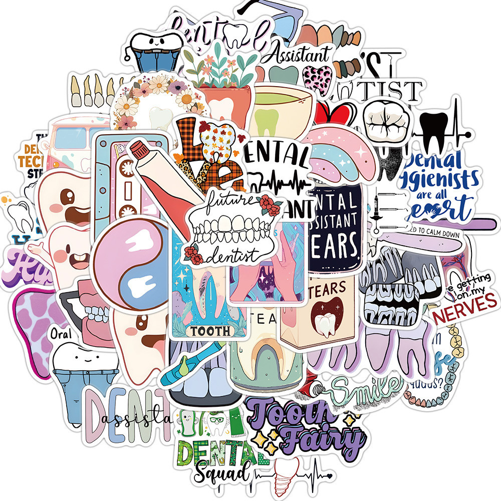 [Adesivo Grande] 50Pcs Adesivos Dentários Bonitos Proteção Dos Dentes Kids Gift Dentist Clinic Decoration Supplies for school Professores Sticker