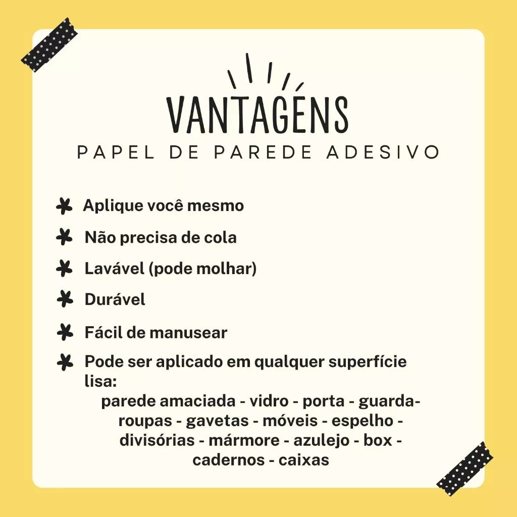 ************* NÃO ESQUEÇA DE ENVIAR SUA ARTE ASSIM QUE FIZER A COMPRA CASO A ARTE NÃO SEJA ENVIADA DENTRO DO PRAZO PARA IMPRESSÃO E ENVIO, ENVIAREMOS UMA ARTE ALEATÓRIA NÃO TENDO DIREITO A DEVOLUÇÃO ************* Olá, Somos a ADVENTO COMUNICAÇÃO A ÚNICA EMPRESA QUE FORNECE QUALIDADE COM PREÇO JUSTO, POIS SOMOS IMPORTADORES E FABRICANTES, ISTO FAZ NOSSA QUALIDADE E PREÇO SEREM IMBATÍVEIS. TRABALHAMOS COM O MELHOR MATERIAL DO MERCADO PARA APLICAÇÃO, 140GR - 010 ESPESSURA. FACILITA NA APLICAÇÃO, NÃO RASGA FACIL E NÃO É PROMOCIONAL. TEMOS A MELHOR IMPORTAÇÃO DA CHINA, EM MATERIA PRIMA. PRIORIZANDO A QUALIDADE E A FACILIDADE PARA NOSSOS CLIENTES NA APLICAÇÃO! O Papel de Parede Autocolante é uma excelente alternativa para você mesmo decorar sua casa de forma prática e econômica sem fazer sujeira, deixando o ambiente moderno e muito mais elegante e sofisticado. DESCRIÇÃO: - Fabricamos qualquer tamanho - Tamanho: 50x30cm O nosso Papel de Parede é atóxico, não agride o meio ambiente e nem a sua saúde pois é autocolante, não possui relevo, tem sua superfície lisa, não necessitando de cola como outros papéis de parede convencionais, ele se adapta a diversas superfícies lisa. Podendo ser utilizado para decorar praticamente todos os ambientes de sua casa, os quartos de crianças, consultórios pediátricos, lojas de roupas, cozinha e o que mais sua necessidade imaginar. RECOMENDAÇÕES: Recomendamos que a superfície aplicada seja lisa, sem porosidades ou texturas. É imprescindível que antes da colocação a parede esteja limpa, sem poeira ou umidade para maior durabilidade e acabamento! Não aplicar em parede com mofo, texturas, rústicas, bolor, umidade ou infiltrações, aconselhamos sempre em parede com gesso ou massa corrida lisa e uma demão de tinta; A cor real do produto pode apresentar até 15% de diferença nas tonalidades visualizadas em seu monitor e por encomendas realizadas em períodos diferentes por lote de cada produto. Por este motivo é muito importante que antes de realizar o pedido de compra, você possua as medidas exatas de altura e largura, incluindo portas, janelas e vãos. LIMPEZA E CONSERVAÇÃO: Para garantir maior durabilidade do desenho, limpe seu papel de parede apenas com um pano umedecido com sabão neutro, (ou pano úmido só com água). Se o papel de parede for aplicado em locais com incidência de raio UV (ultravioleta), após a impressão, algumas cores poderão se deteriorar em até dois anos. Vantagens: Papel de parede autoadesivo impresso em alta resolução com 1900 dpis. Impressão em adesivo fosco acetinado, ou seja, o produto possui um leve brilho proporcionando menos reflexo na foto ou vídeos. Produto lavável, e não propaga fogo. COMPRA DO PRODUTO: Calcule corretamente sua necessidade, pois compras efetuadas em períodos distintos poderão ocorrer diferenças de tonalidades nos produtos de até 15%. APLICAÇÃO: Aplicar os papéis de parede sempre na vertical, da esquerda para direita, respeitando a sobreposição de 5mm. Evite aplicar em paredes pintadas recentemente, aguarde no mínimo 10 dias. Não Aplicar em paredes com tonalidade escura ou por cima de outro papel de parede, pois poderá ocorrer transparência. O produto autoadesivo requer paciência na aplicação, caso não seja seu perfil contrate um profissional em aplicação de papel de parede autoadesivo. TROCAS E DEVOLUÇÕES: Para trocas e devoluções não será permitido qualquer indicio de uso ou avaria do papel de parede. Montagens desmontagens e instalações são de responsabilidade do cliente, estes serviços não estão inclusos no valor do produto. Estamos a disposição para qualquer esclarecimentos!