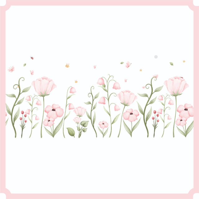 Adesivo Jardim Suspenso Encantado Flores Rosa Sem Fundo Floral com Borboleta - Fácil Aplicação Quarto de Menina