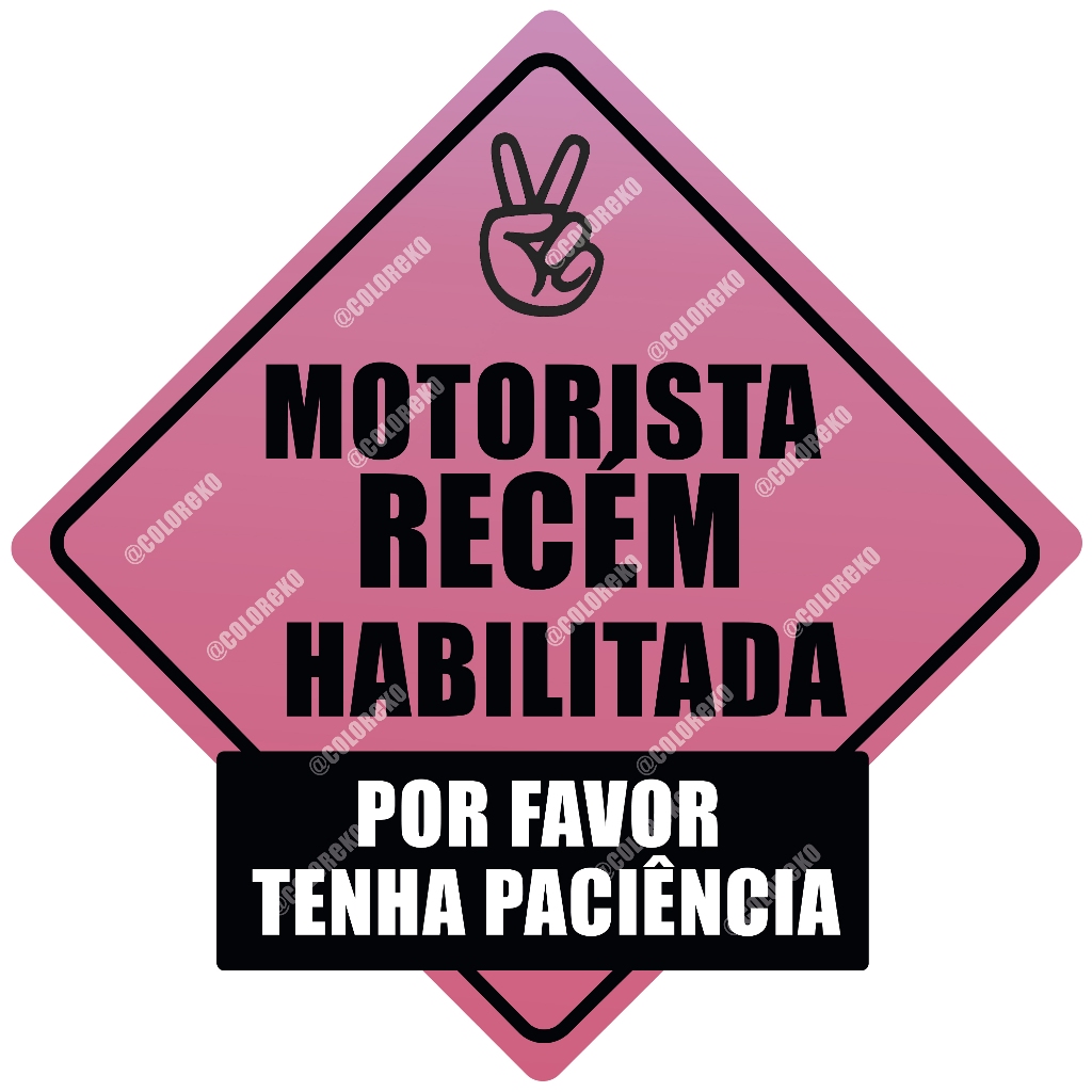 Adesivo motorista recém habilitado habilitada amarelo rosa ou azul vinil fosco fácil aplicação 20cm