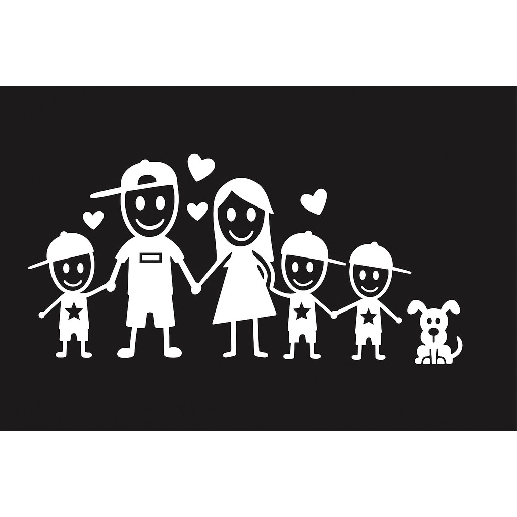 adesivo Pai mãe 3 meninos cachorro para carro moto e caminhão